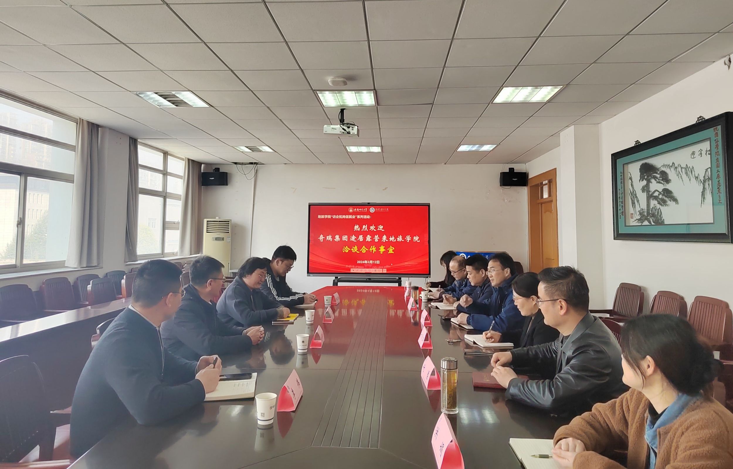 三楼会议室举行校企合作交流会。奇瑞控股集团招聘中心主任李伟,途居露营投资管理股份有限公司总经理钱奕安,人事总监司琪,综合部部长乔启明,91网站