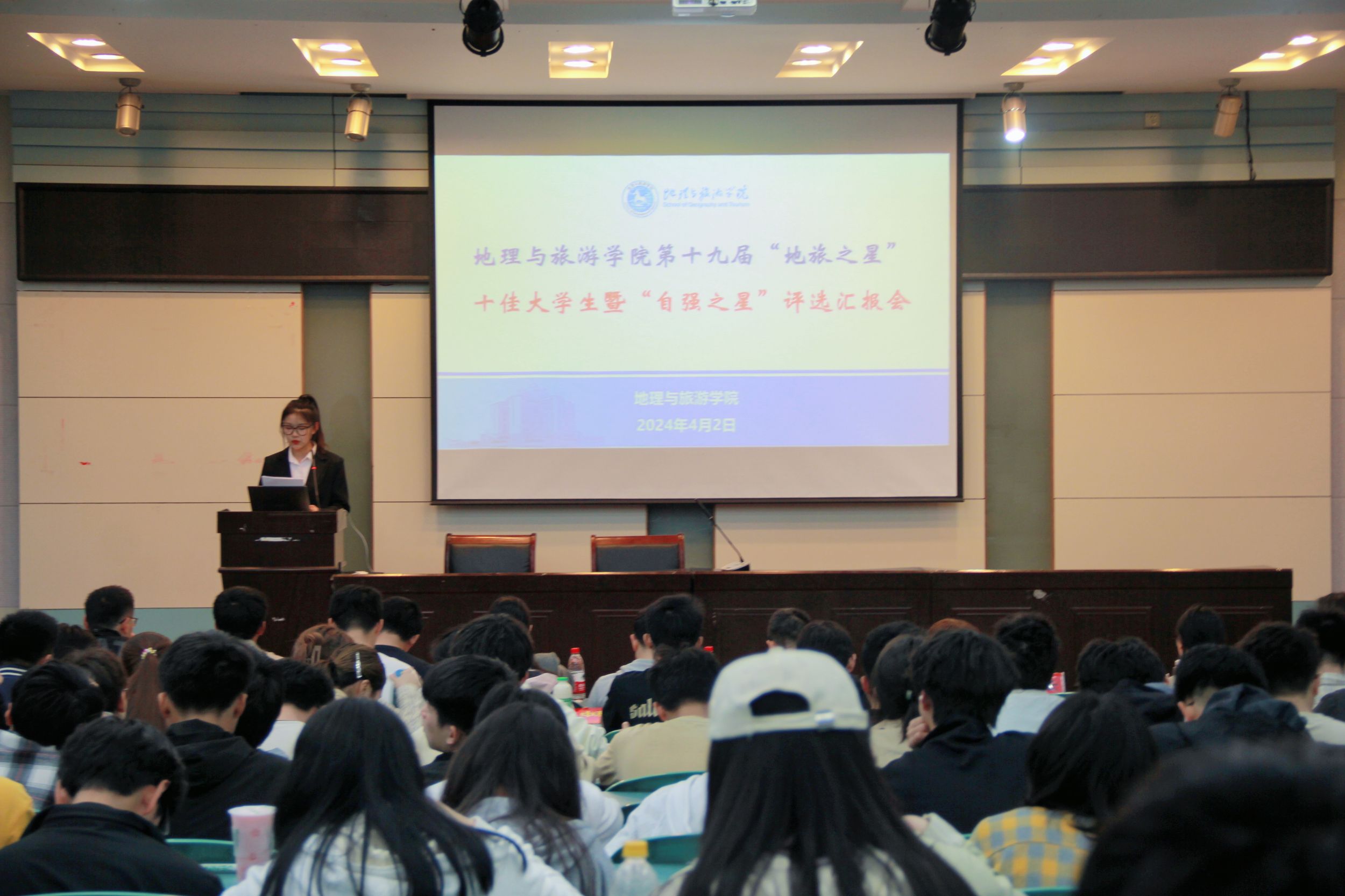 在实验楼101报告厅举行第十九届“地旅之星”十佳大学生暨“自强之星”评选活动。地理科学师范专业教师张平究、土地资源管理专业教师梁栋栋、旅游管理专业教师黄薇薇、地理信息科学专业教师徐培培、城乡规划专业教师黄秋实、91网站
