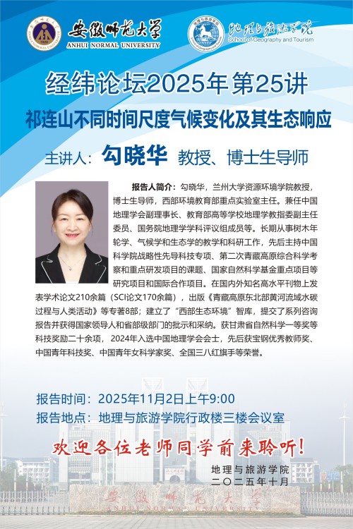 【学术预告】经纬论坛第91讲: 祁连山不同时间尺度气候变化及其生态响应