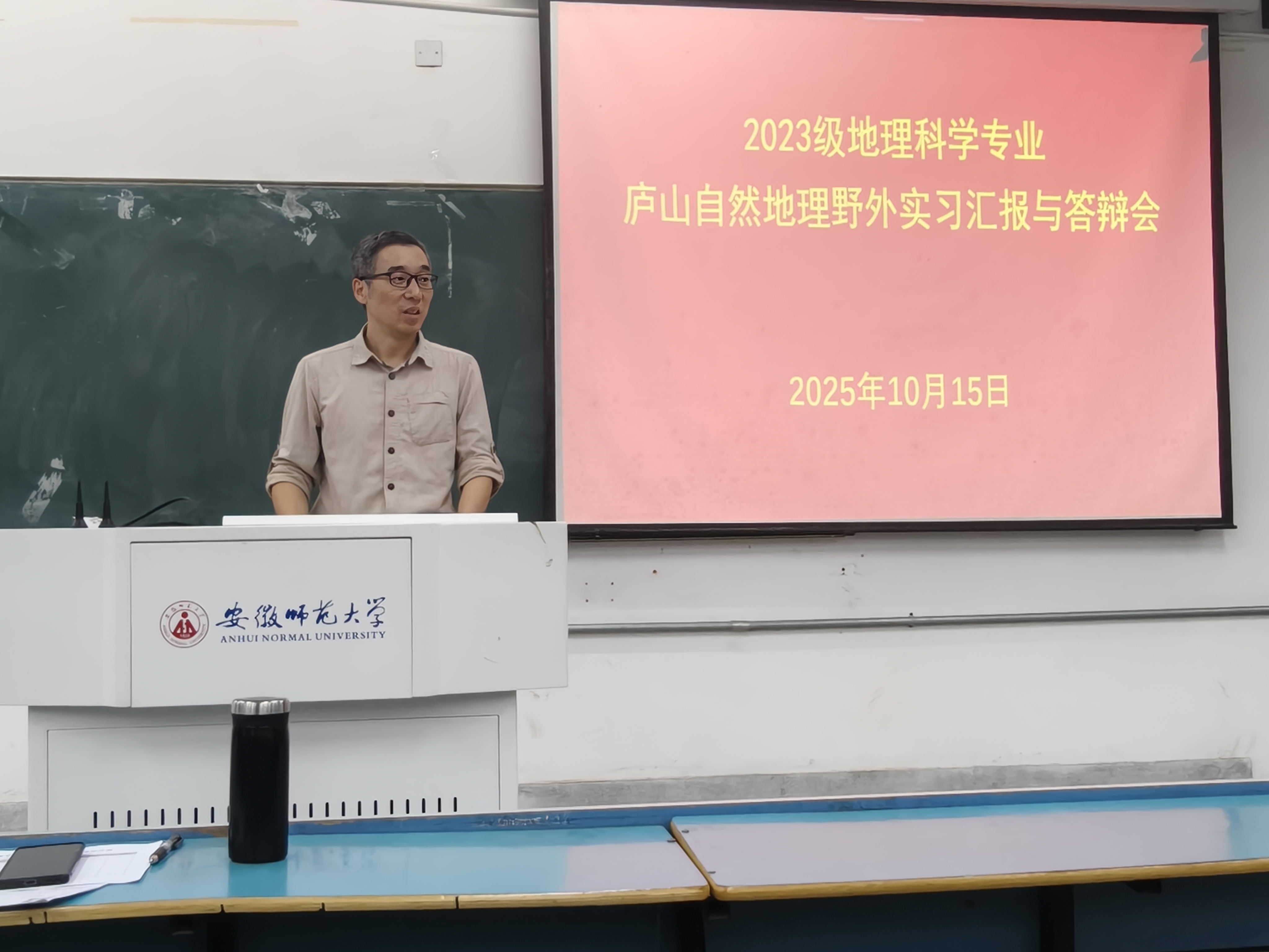 在教学楼报告厅成功召开2023级地理科学专业庐山实习总结汇报与答辩会。会议由胡春生老师主持,实习指导教师朱永恒、张平究、汪青、余建、吴立、汪勇、刘新圣,辅导员老师及2023级地理科学专业全体学生参加。