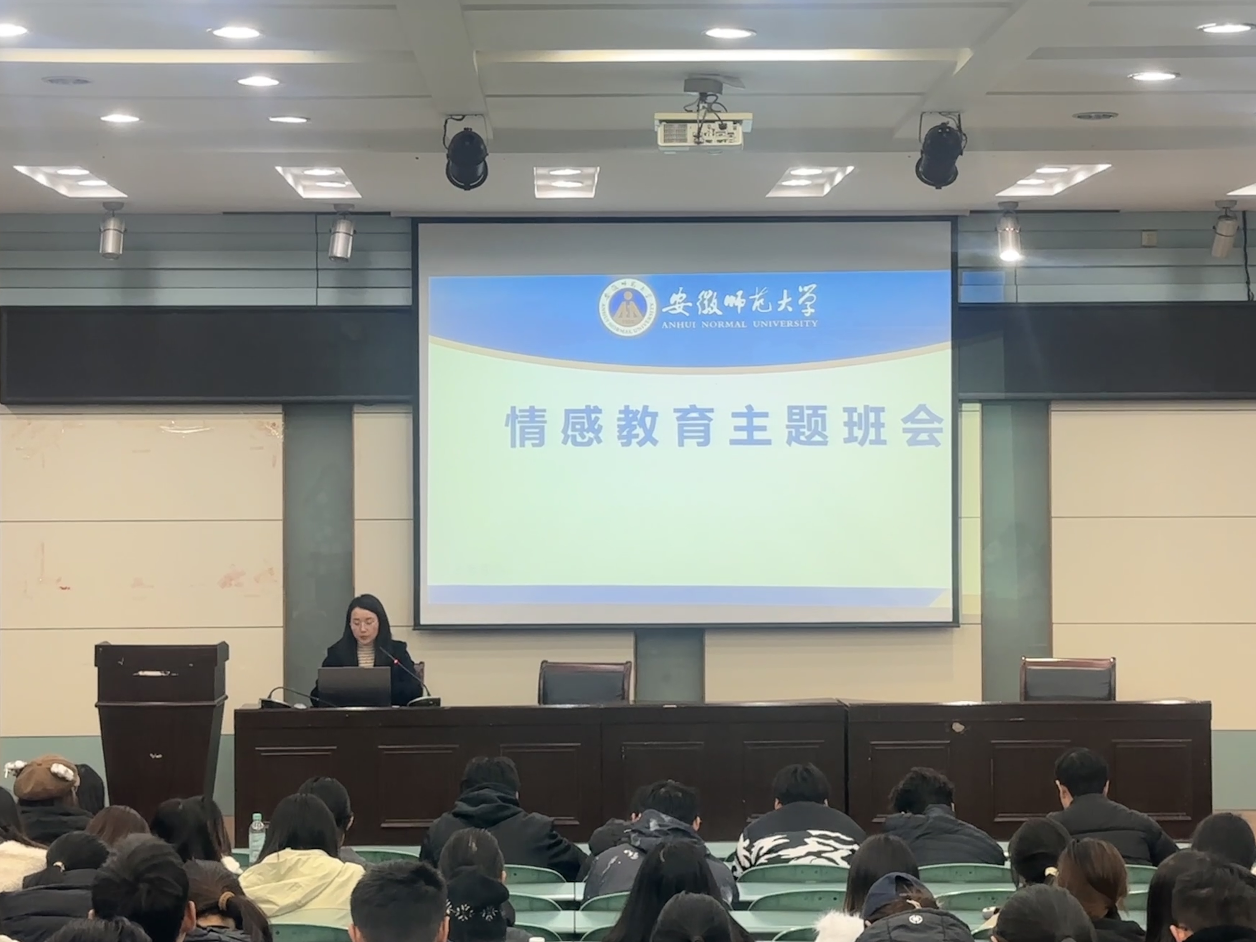 为引导大学生树立健康的情感观念,提升人际交往能力,2025年12月4日,2024级地理科学(师范)、土地资源管理和城乡规划专业于实验楼101召开情感教育主题班会。会议由辅导员彭媛媛主持,各专业全体同学参加。