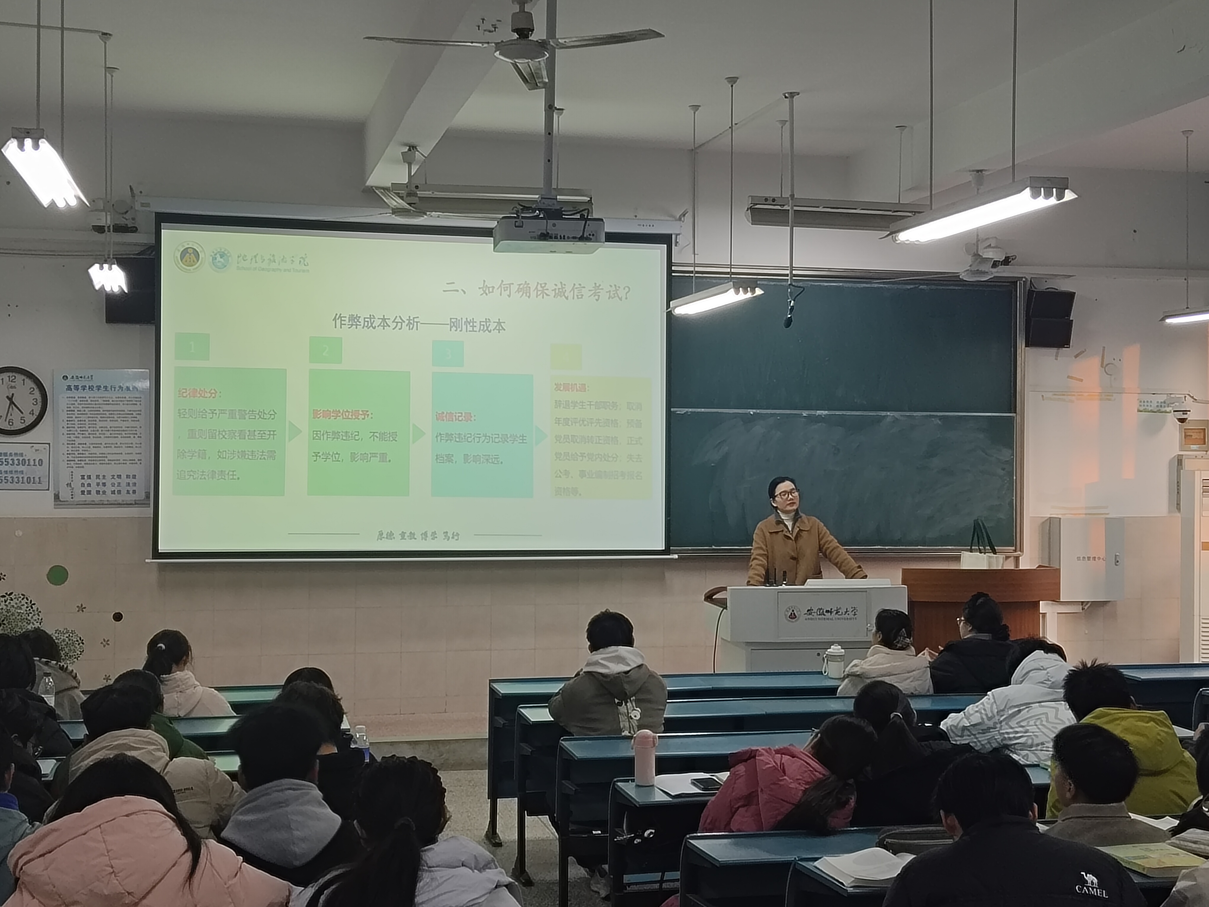 为引导学生科学备考、严肃考风考纪,营造积极向上的学习氛围,12月25日,我院2024级地理信息科学、旅游管理专业召开了期末学风建设与诚信考试主题班会。班会由辅导员韦银艳主持。
